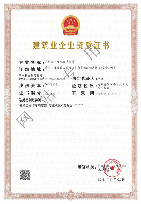 奥丰资质证书