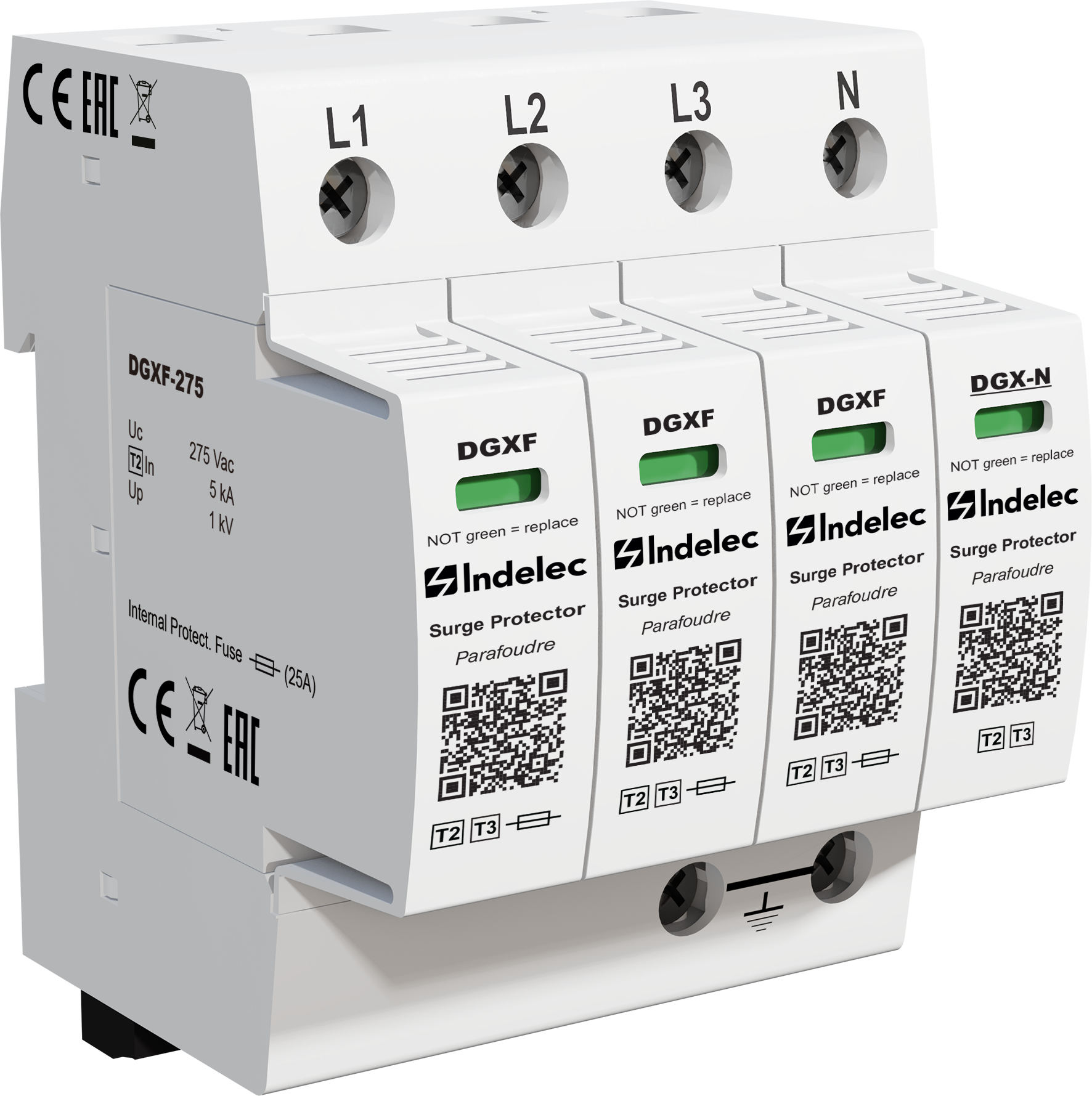 防雷器 Type 2 (或3) DGXF 275 C2,单向,四向,内置熔断器