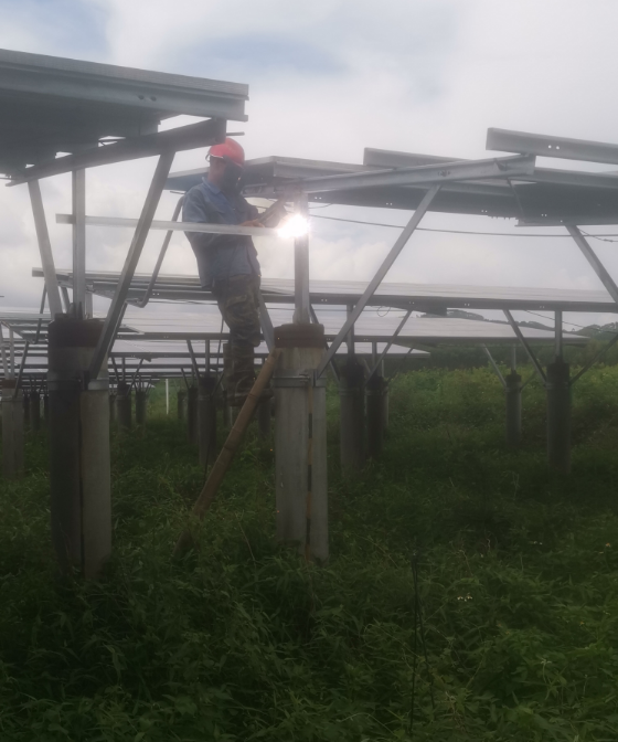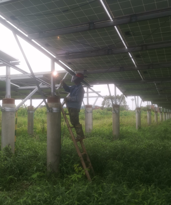 由我公司中标实施的广西鼎旭同辉农业投资有限公司绿色能源光伏发电站防雷接地技改抢修项目在2023年7月14日对第二阶段的接地网焊接及防腐除锈工作开展以来,项目进展顺利,已经进入最后冲刺收尾阶段。详见下图: