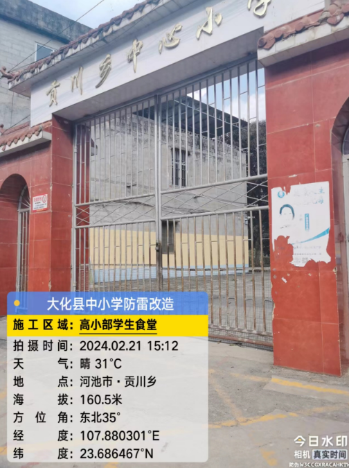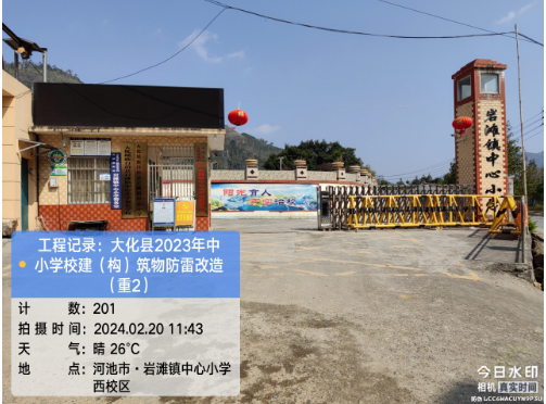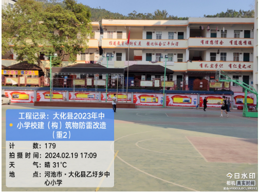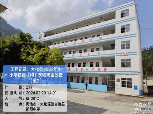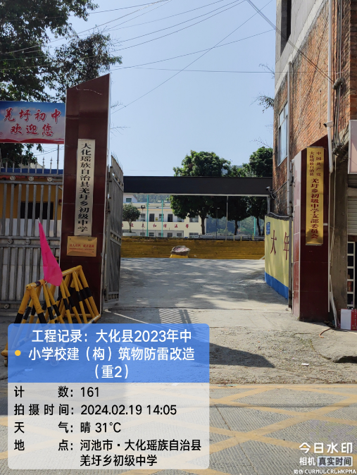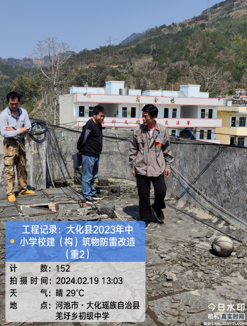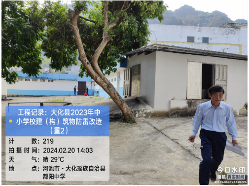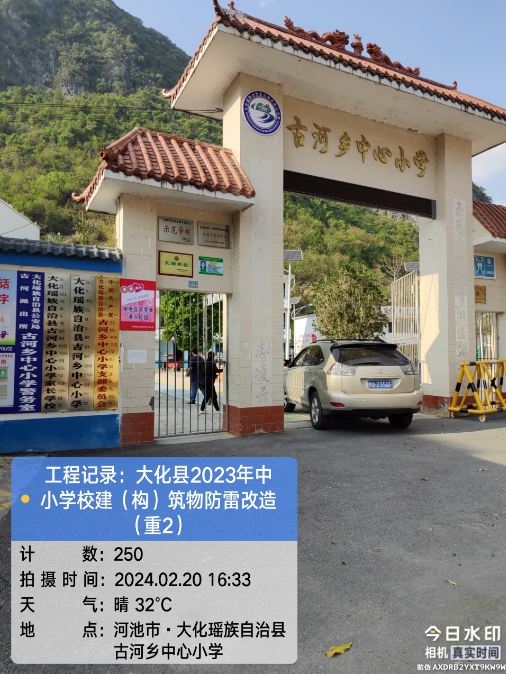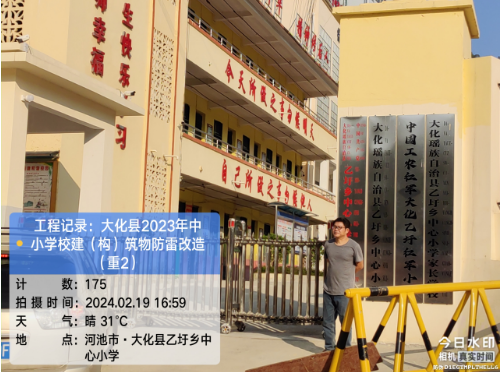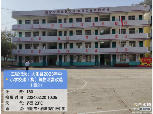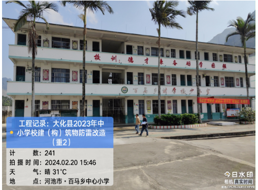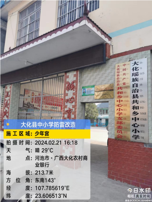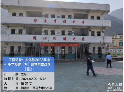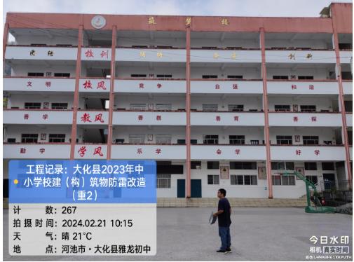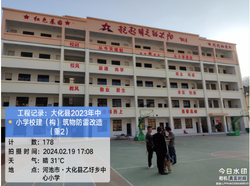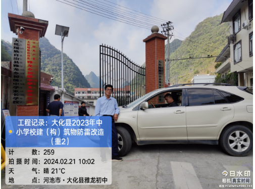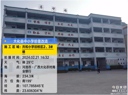由我公司中标实施的大化瑶族自治县2023年中小学校建(构)筑物防雷改造(重2)项目,公司在2024年春节假期收假上班后第二天即安排项目经理带领项目部相关工程技术人员前往大化县,2024年2月19日--21日历时三天对本次工程项目涉及的九个乡镇十四所学校建(构)筑物防雷装置现状进行实地踏勘,收集现场第一手资料,为正式进场施工做前期准备。详见下图:
