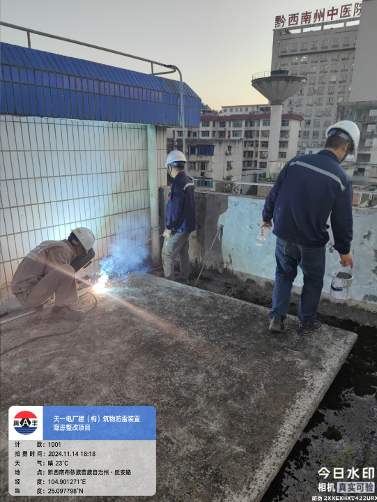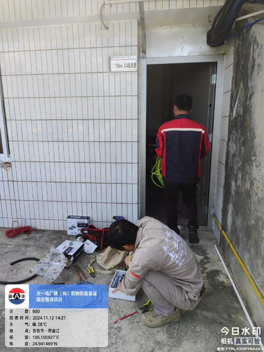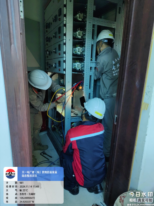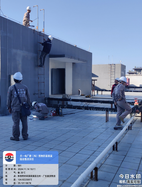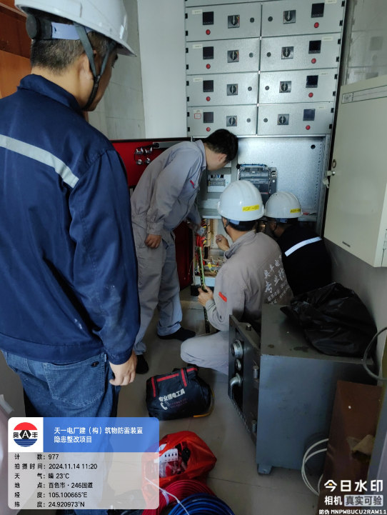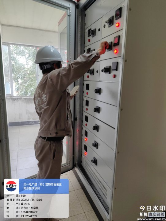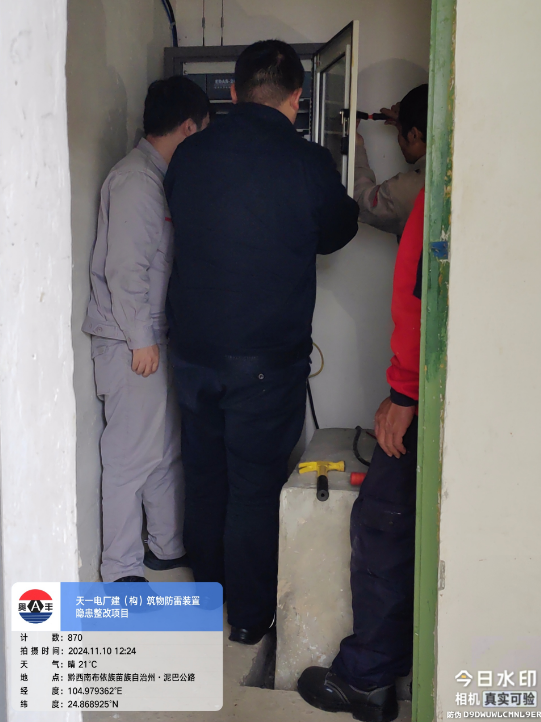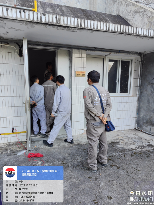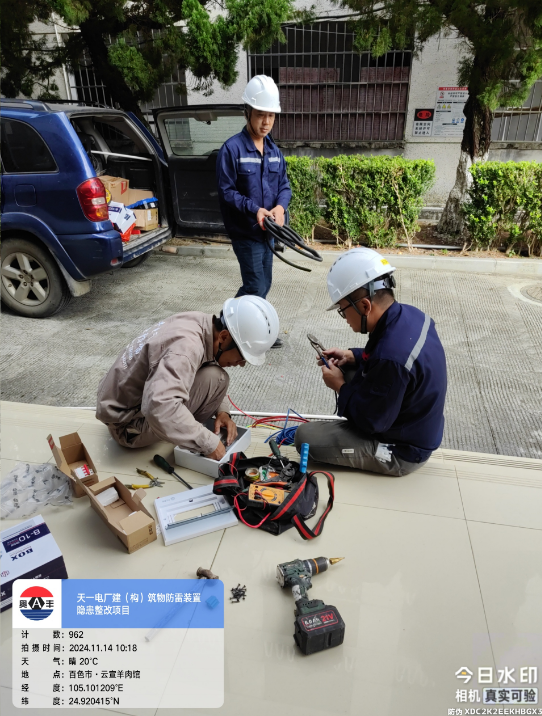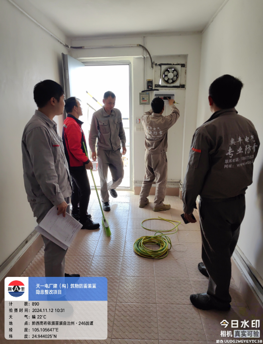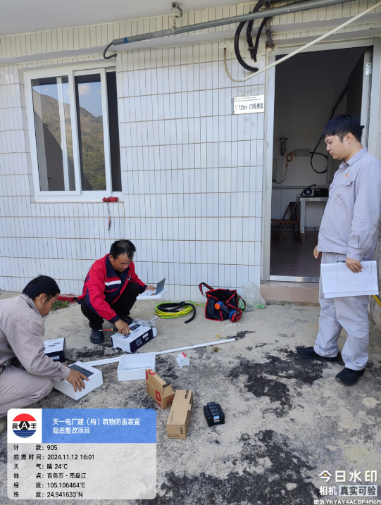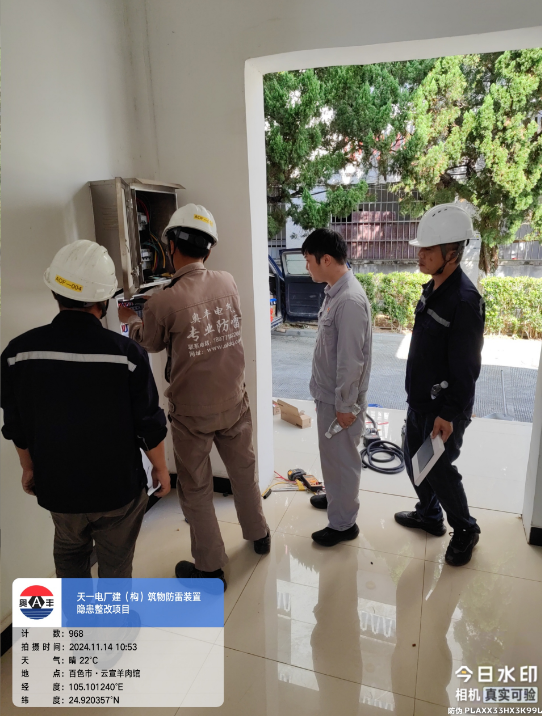 由我公司中标实施的天一电厂建(构)筑物防雷装置隐患整改项目,我公司工程施工人员经业主单位2024年11月9日三级安全生产培训及考试合格后,11月10日自五个地震监测站及八个观测房安装浪涌保护器开始对该项目各个分部分项工程正式施工。详见下图: