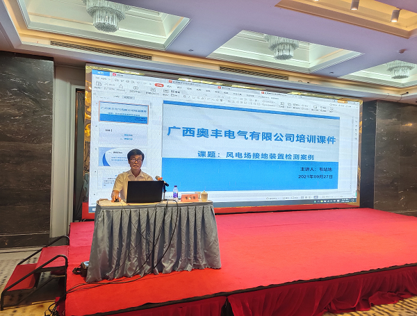 应海南省气象局的邀请,我公司韦战地总工程师于2021年9月27日下午在海口澄迈县举行的2021年海南省雷电防护装置检测业务培训班上做了《风电场接地装置检测案例》的专场主题讲座,受到了在场全体学员的热烈欢迎和一致好评。详见下图: