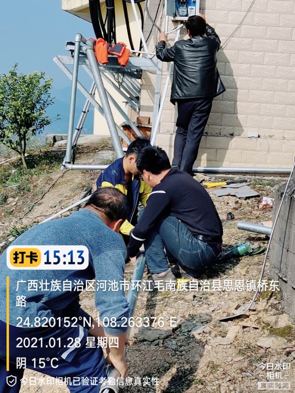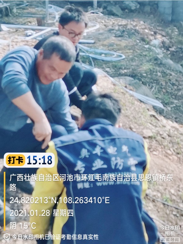由我公司负责实施的环江转播台防雷装置整改工程,于2021年1月31日上午完成全部施工任务。见下图: