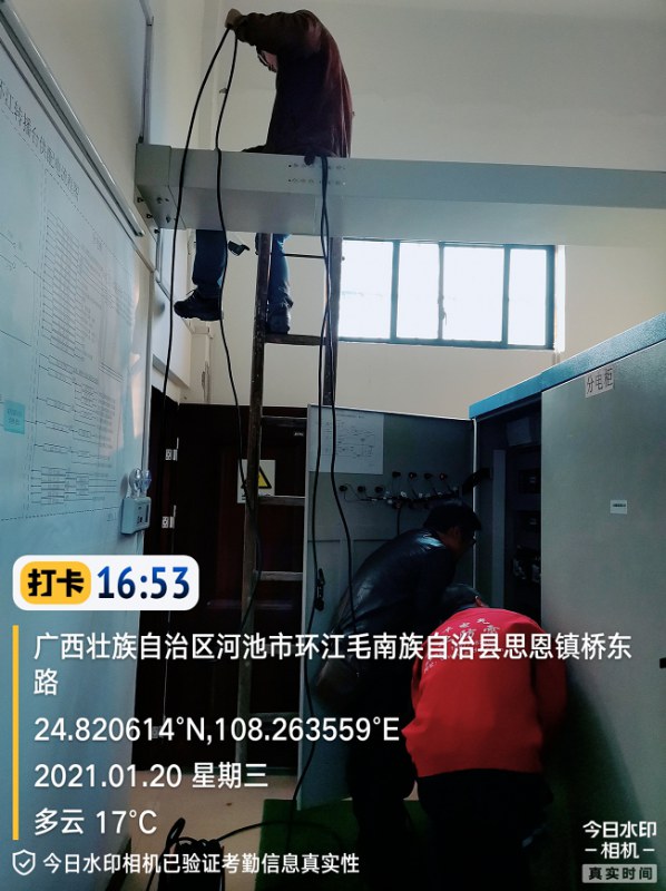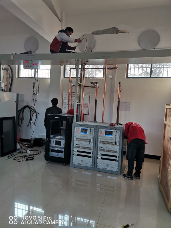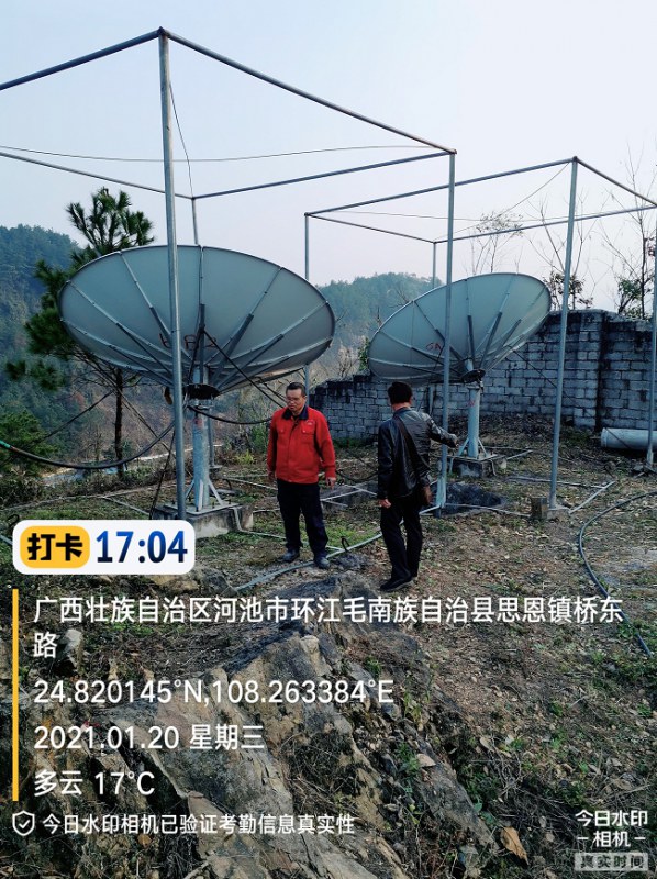 由我公司负责实施的环江转播台防雷装置整改工程的工程技术人员2021年1月19日正式进场施工。详见下图: