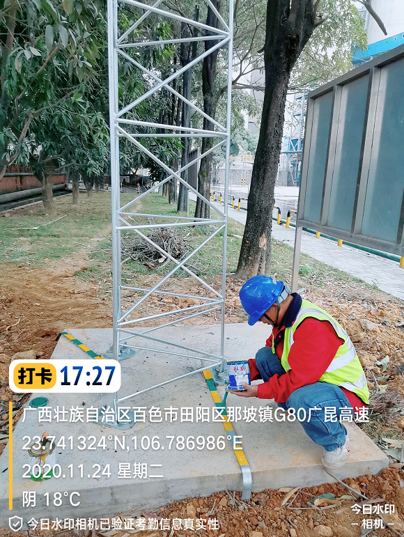 由我公司中标实施的华润田阳水泥有限公司避雷针安装项目(含接地网)2020年11月24日安装完成。详见下图:
