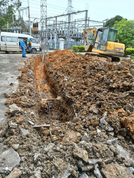由我公司中标实施的广西水利电力建设集团有限公司宜州水力发电厂拉浪电站避雷针接地网设计改造项目,自工程技术人员2020年3月17日进场施工至3月3月31日止,已完成超过本次施工任务的50%以上工程量。详见下图: