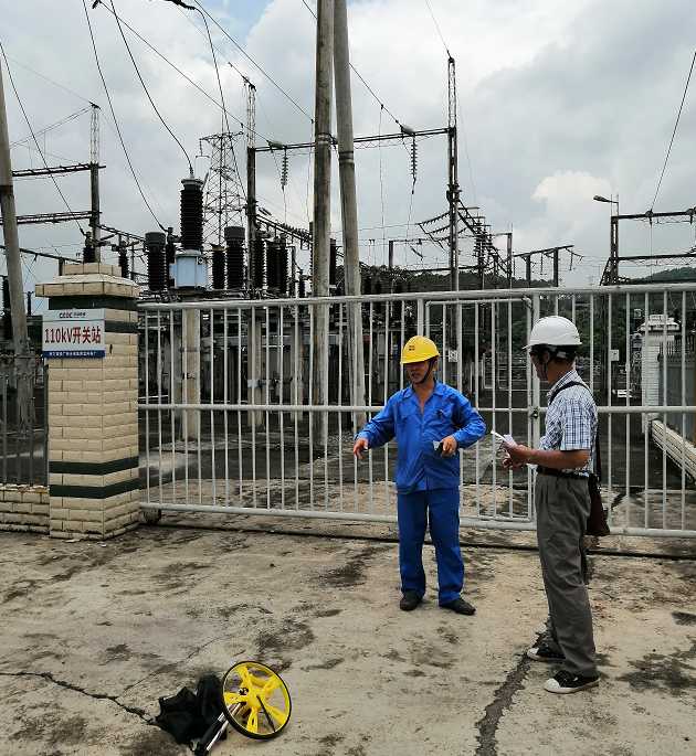 2019年7月24日,受能建广西水利电力建设集团有限公司宜州水力发电厂的邀请,我公司工程技术人员对拉浪水电厂110KV开关站的防雷接地系统进行现场检查。详见下图: